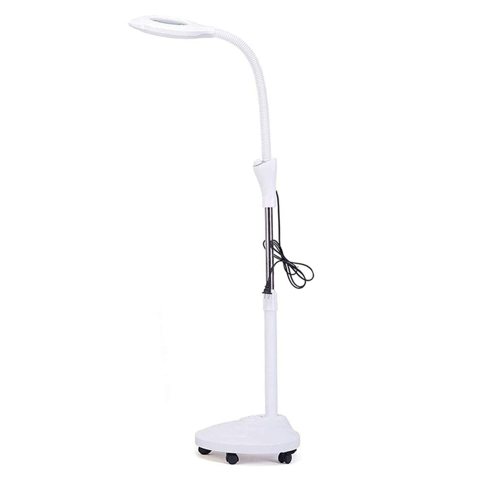 Lampe sur pied avec loupe, équipée d’un grossissement précis et d’un éclairage puissant, offrant une mobilité fluide, une stabilité renforcée et un confort visuel optimal pour les examens détaillés.
